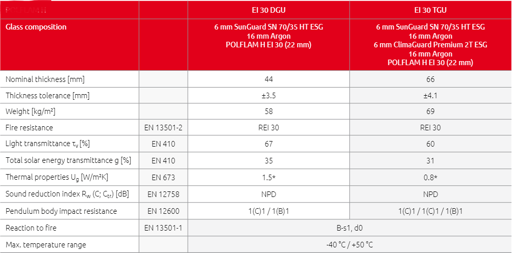 Ο πυράντοχος υαλοπίνακας τύπου H με κλάσεις πυροπροστασίας ΕΙ 30 DGU και EI 30 TGU χρησιμοποιείται σε φεγγίτες οροφής.